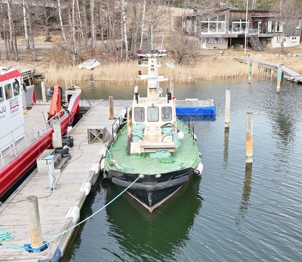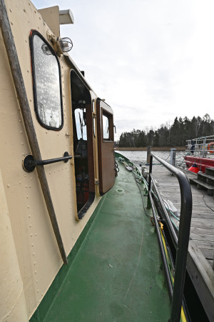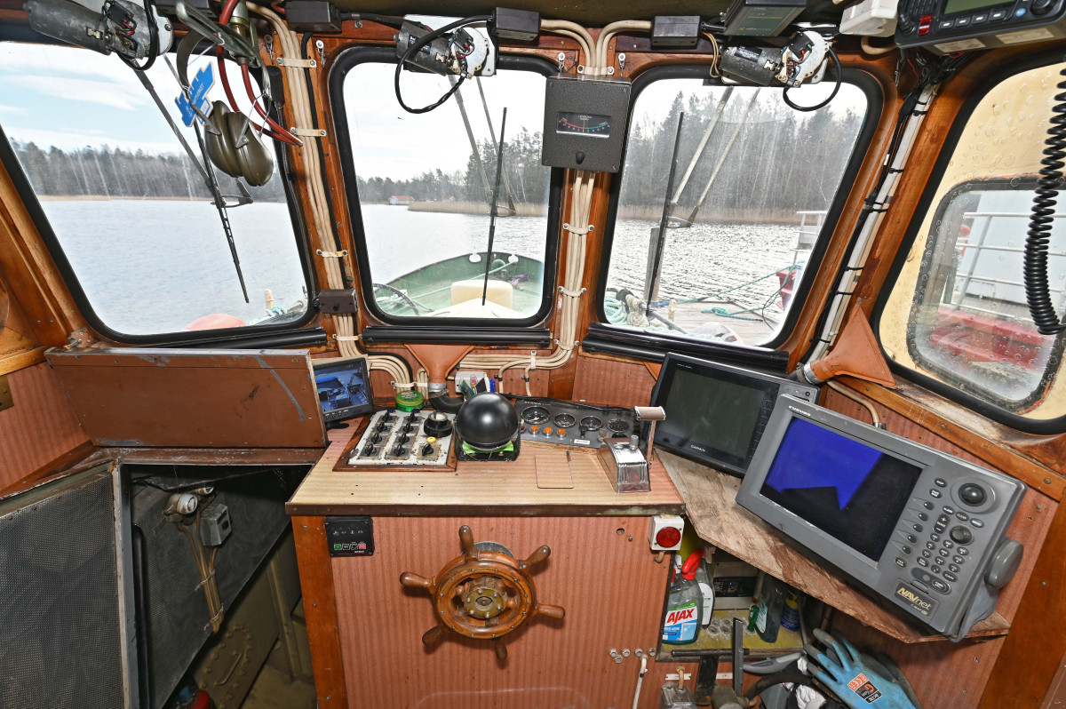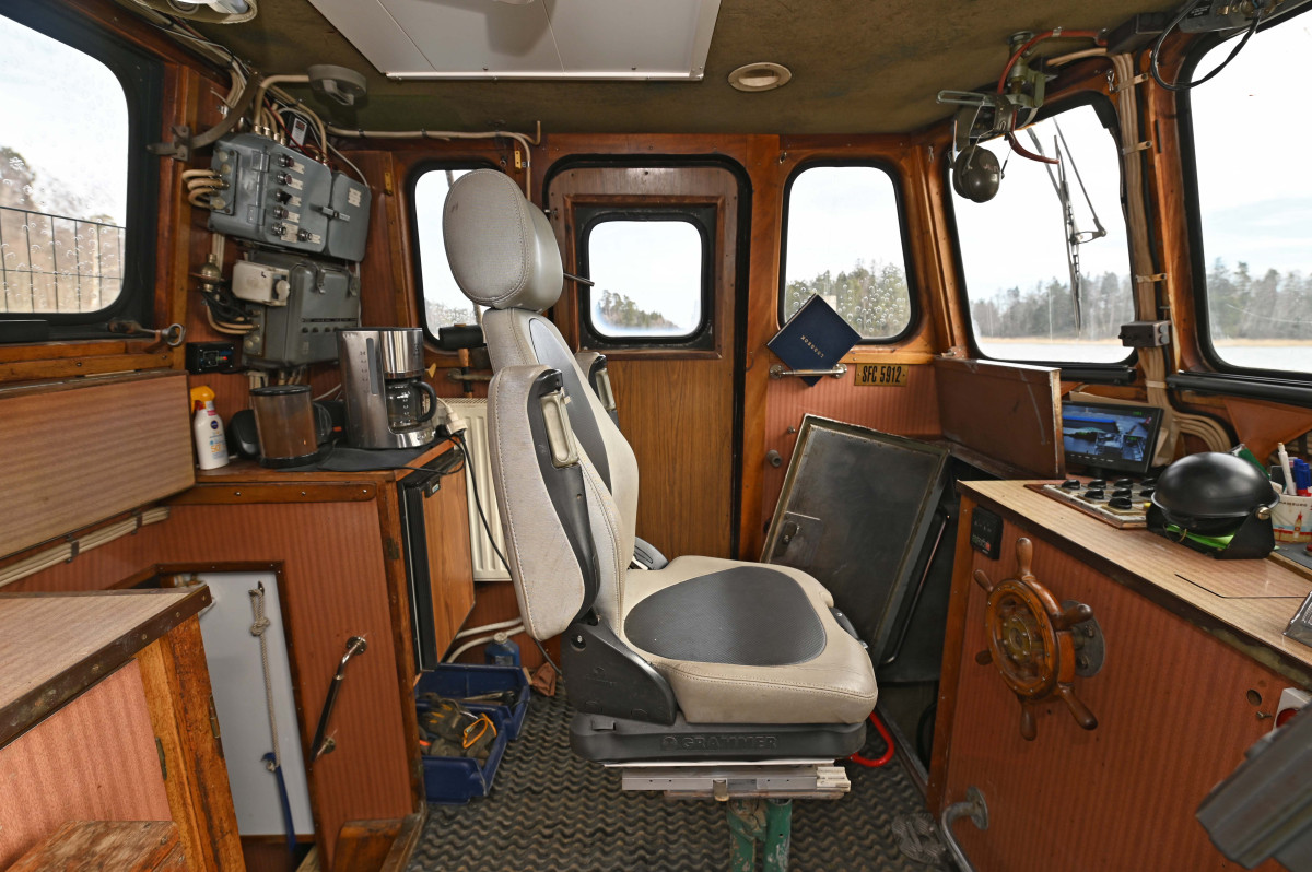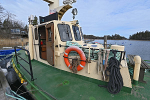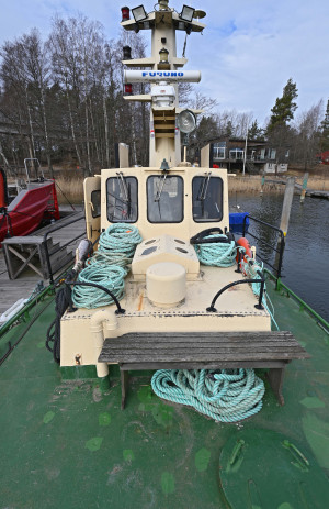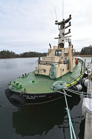 Older icegoing pilot boat. Dimensions 11.5 × 3.9 m. Main engine Scania DS8, 130 hp, with approximately 4,500 hours, installed in 1977. Wheelhouse equipped with Furuno plotter and radar. Companionway leading down to aft saloon with sofas, center table, microwave oven and a small TV. Storage space forward of the engine room. Gute Kuling has served as an ice boat during winter and has been used for barge towing the rest of the year.