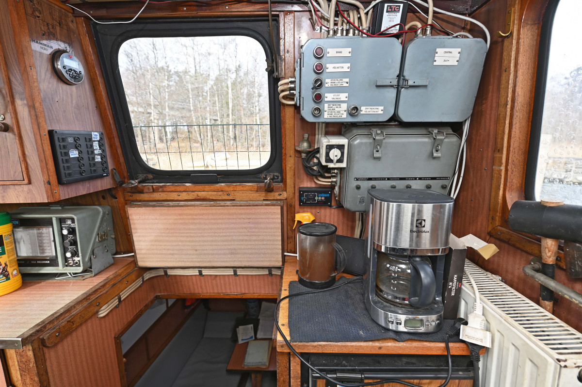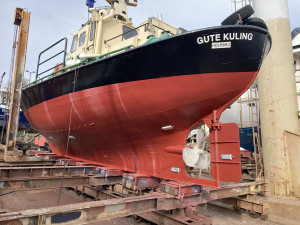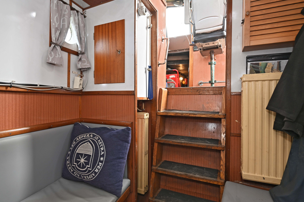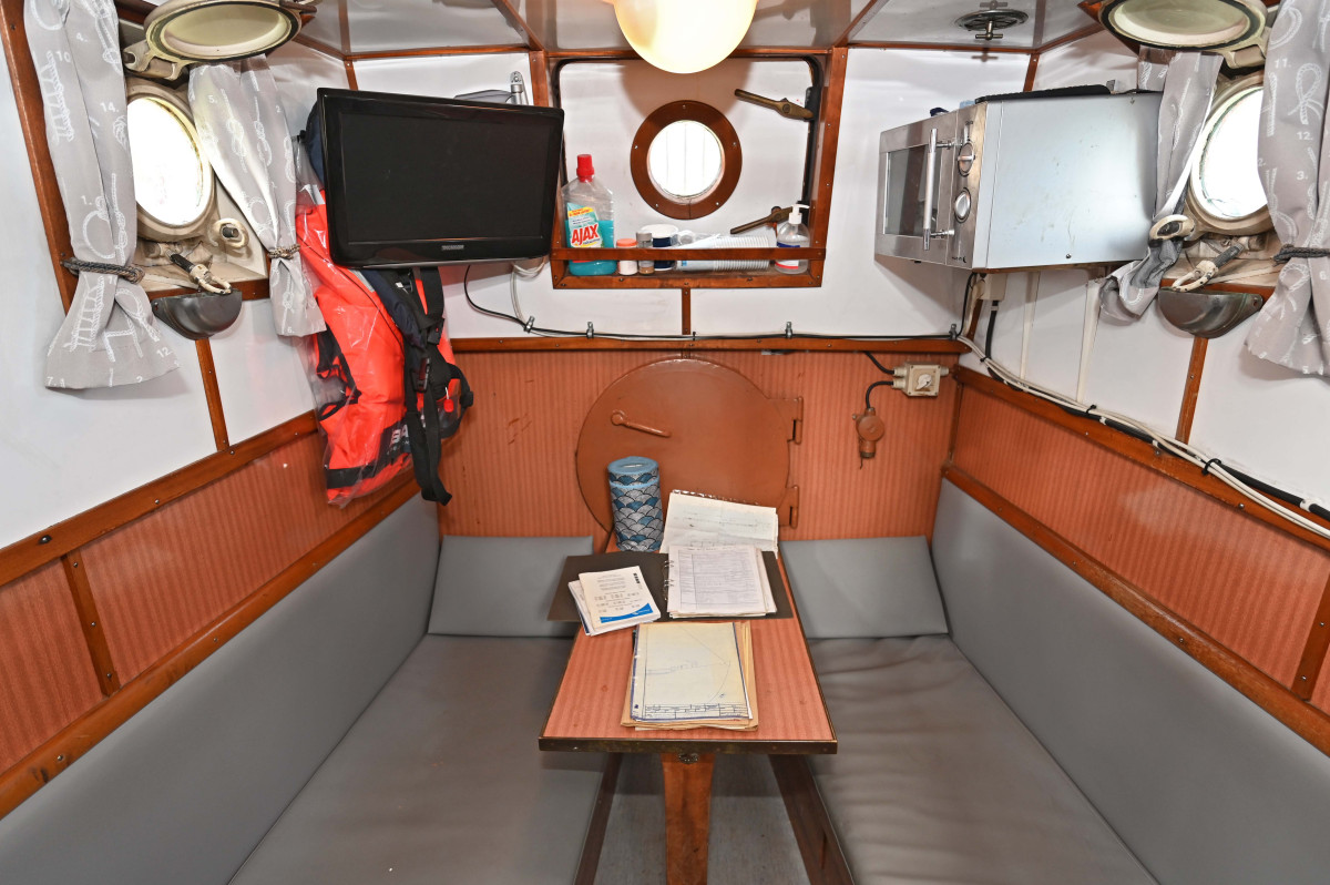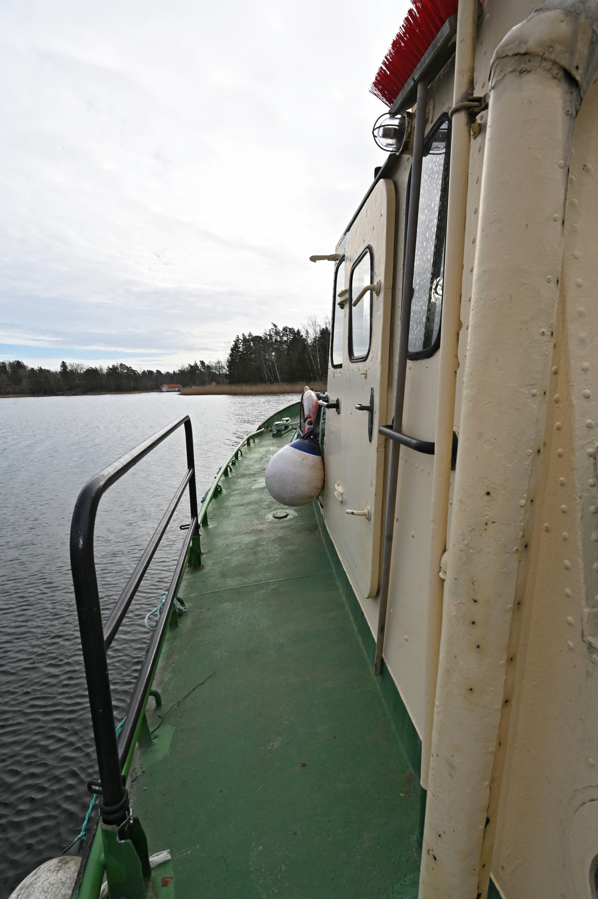 Older icegoing pilot boat. Dimensions 11.5 × 3.9 m. Main engine Scania DS8, 130 hp, with approximately 4,500 hours, installed in 1977. Wheelhouse equipped with Furuno plotter and radar. Companionway leading down to aft saloon with sofas, center table, microwave oven and a small TV. Storage space forward of the engine room. Gute Kuling has served as an ice boat during winter and has been used for barge towing the rest of the year.