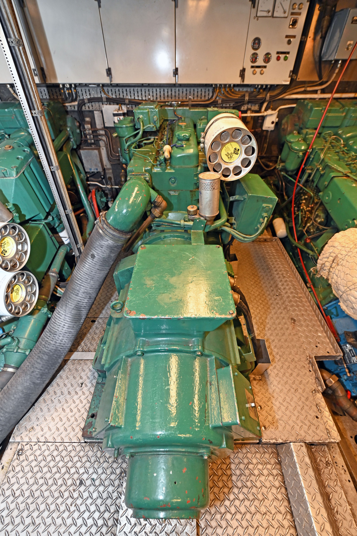 Maskinrum. 2x Volvo TAMD120, en Volvo med Stamford generator, samt en nyare Onan Genset om 80hkr och 30 kVA.