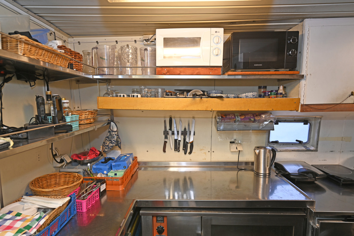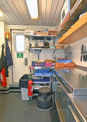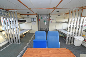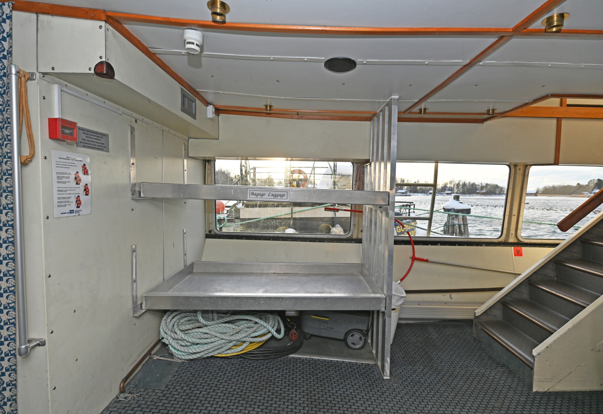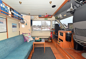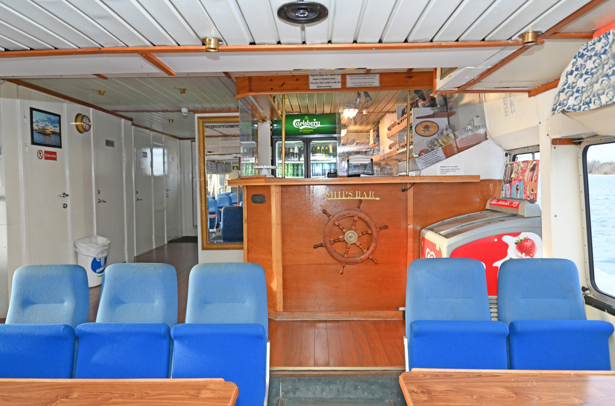 Salong huvuddäck. 67 stolar med tillhörande bord. Baggageförvaring i fören och bar/café, samt toaletter i aktern.