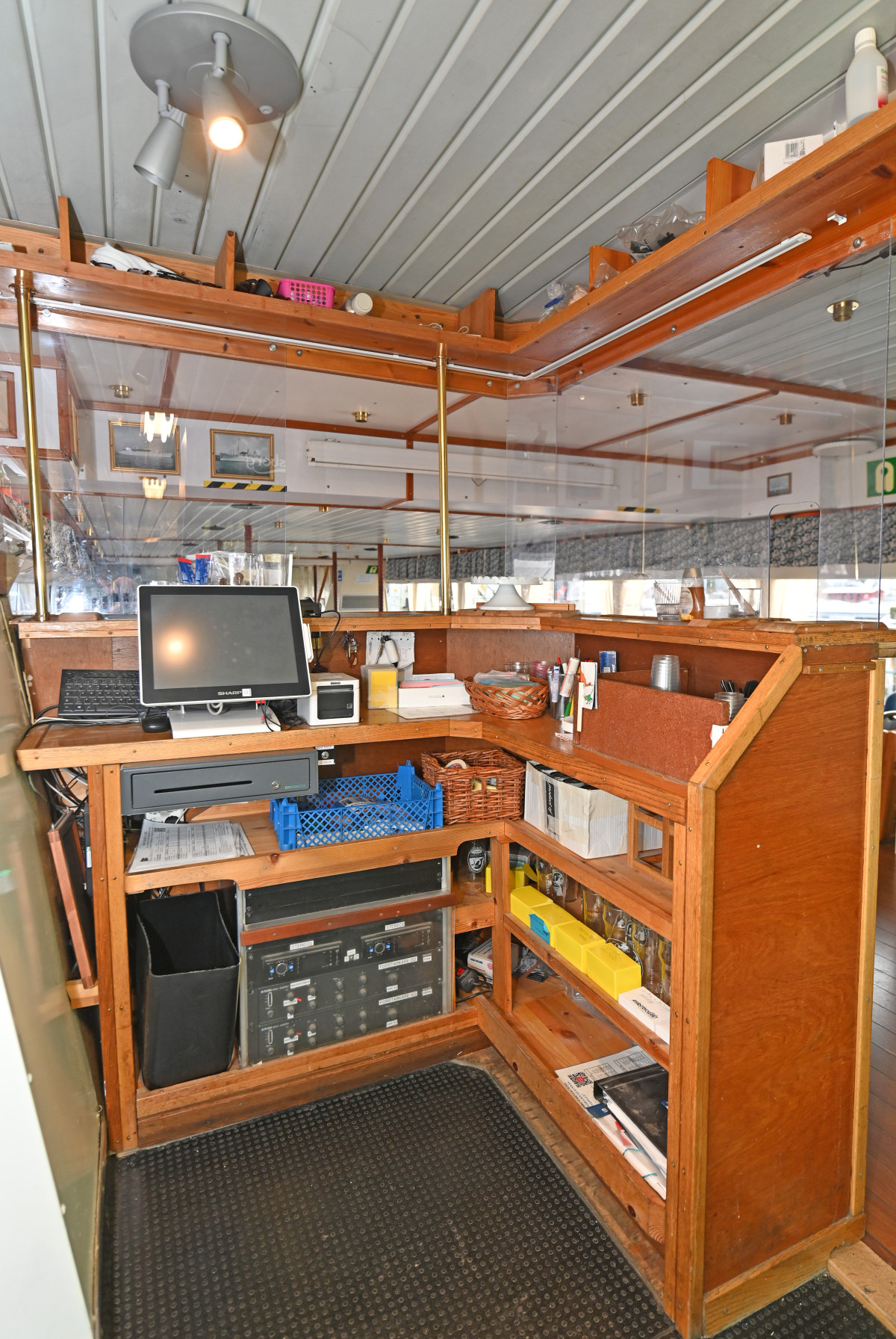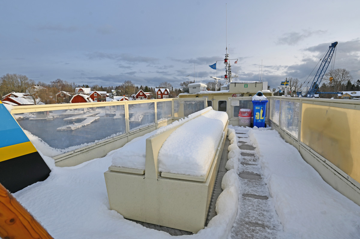 På övre däck finns 24 sittplatser (installerade 2022) inomhus samt cirka 50 sittplatser på soldäck. Tonade isolerglas på båda däck.