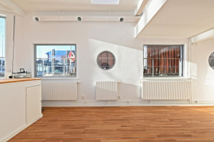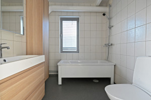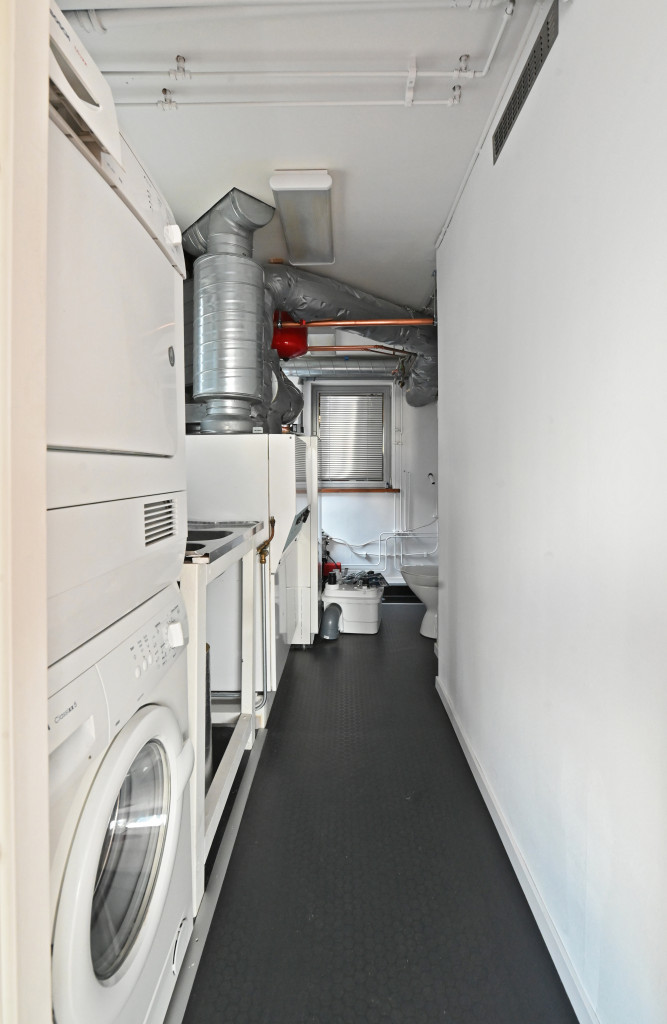Vardagsrum, kök och teknikrum med tvättstuga. Allt i nyskick.
