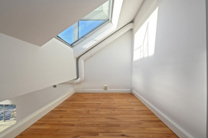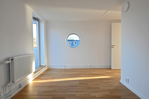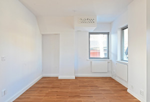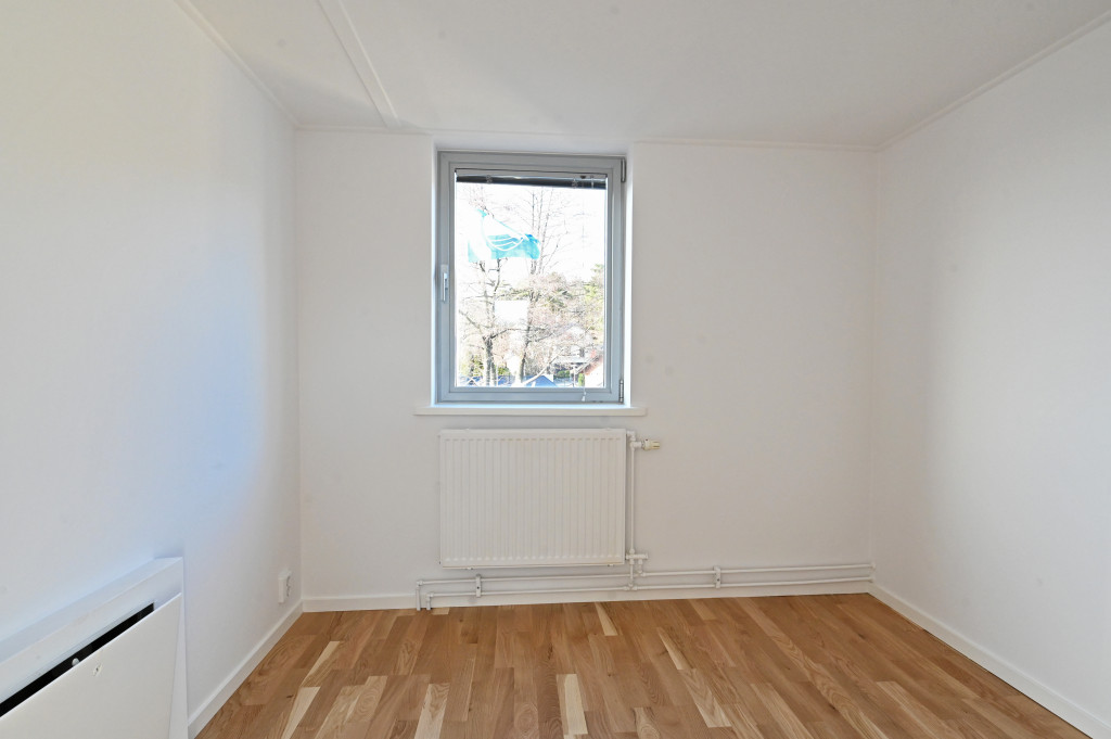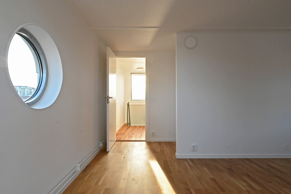 Tredje våningen. Ett större sovrum med balkong/terass samt ett mindre sovrum, toalett med dusch. Utgång till takterass.